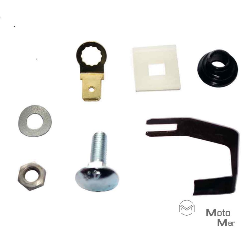 Im Satz sind folgende Teile enthalten: - 1 Sechskantmutter BM5 439 - 1 Federscheibe B5 DIN 137 - 1 Zunge für Masseverbindung - 1 Isolierbuchse - 1 Isolierkörper - 1 Kontaktfeder - 1 Flachrundschraube M5x16 DIN 603 - Der Artikel ist ein Fabrikat der MZA