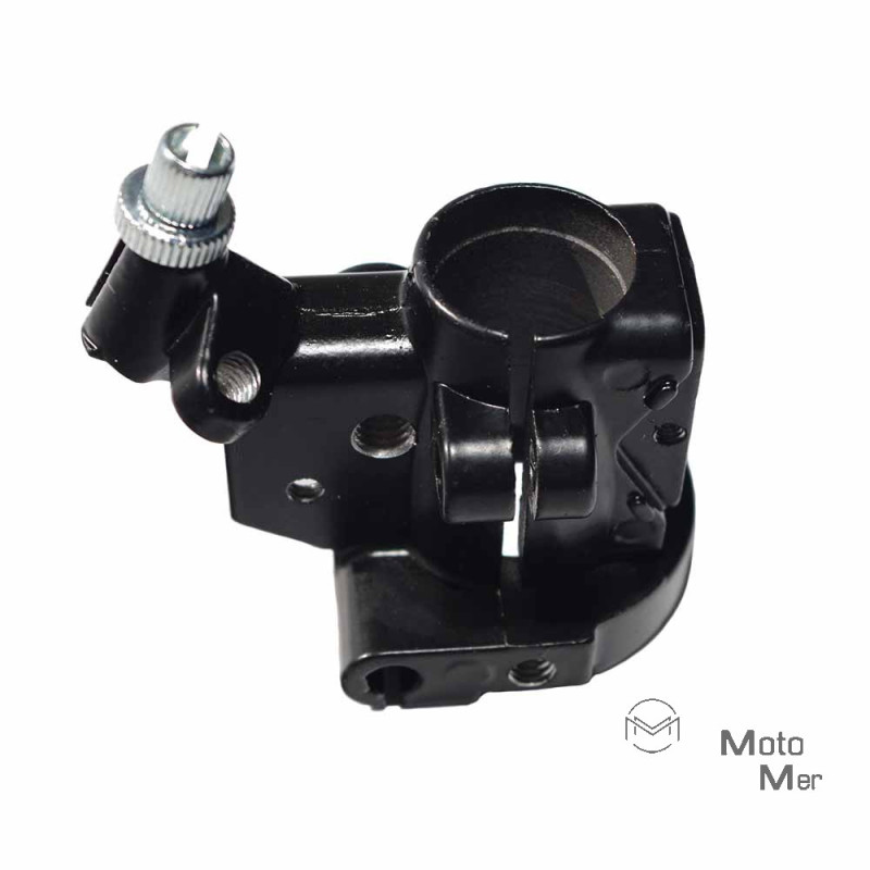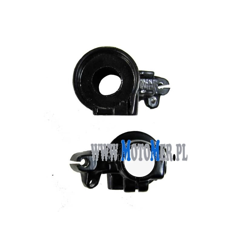 Obejma manetki gazu + uchwyt dźwigni hamulca przód Simson. Wykonany z aluminium, pokryty czarnym lakierem. Pasuje do S50, S51, S53, S70, S83, SR50, SR80. Oferowany towar jest fabrycznie nowy i pozbawiony wad ukrytych.